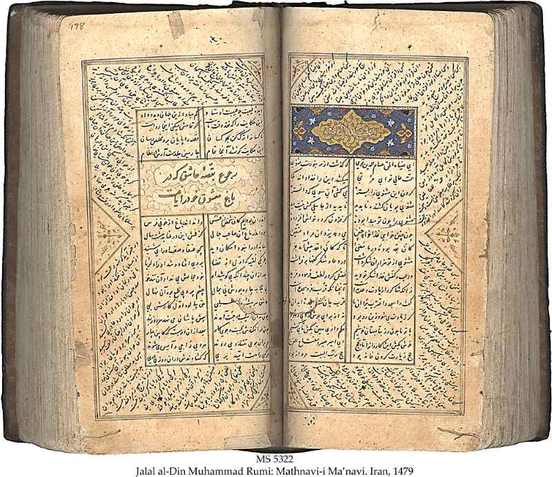 O livro de poemas Masnavi, do poeta sufista Yalal ad-Din Muhammad Rumi .  O título Masnavi-i Ma’navi significa em persa “Casais espirituais”. O Masnavi é uma coleção poética de histórias derivadas do Alcorão e das fontes de hádits (ditos e feitos do profeta Mouhamed). As histórias são contadas com uma beleza profunda consagrada à literatura clássica. Elas ilustram uma variedade de sabedoria islâmica, mas centra-se principalmente em enfatizar a interpretação interna sufista pessoal. O Sufismo é uma vertente mística islâmica, baseada nos ensinamentos do primo do profeta Mouhamed, Ali, o qual foi teve força predominante na Pérsia, atual Irã.